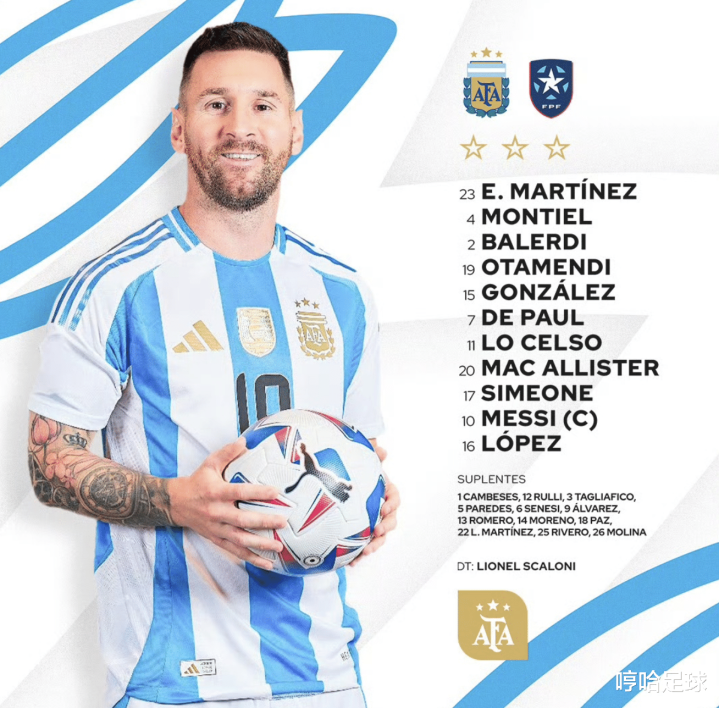 梅西上一场缺席了阿根廷与委内瑞拉的比赛,阿根廷凭借洛塞尔索的进球,以1-0小胜对手。本场面对波多黎各,梅西回归,首发出场,与何塞洛佩斯搭档锋线。在阿根廷队的中场位置,从左至右分别为麦卡利斯特、洛塞尔索、德保罗以及小西蒙尼,冈萨雷斯、奥塔门迪、巴列尔迪跟蒙铁尔搭档后卫,门将大马丁,阿根廷主帅斯卡洛尼使用了442阵型。